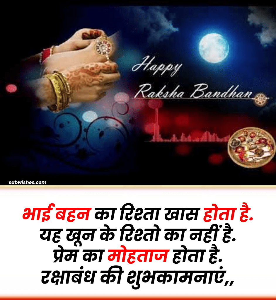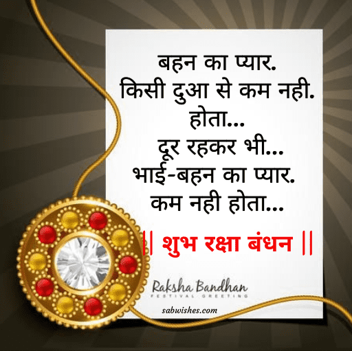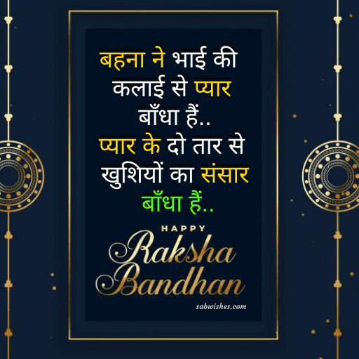 रक्षा बंधन शायरी हिंदी :-हेलो दोस्तों आज हम आपको बताने जा रहे हैं (Raksha Bandhan Par Shayari Hindi Mai) के बारे में क्योंकि रक्षाबंधन पर शायरियों के माध्यम से बहन अपने भाई को विश करती है और भाई अपने बहन को विश करता है. और हर एक बहन को इस त्यौहार का इंतजार रहता है पूरे साल भर इंतजार करने के पश्चात जब यह त्यौहार आता है, Raksha Bandhan Shayari In Hindi Image ? रक्षा बंधन पर शायरी हिंदी मै तो इनकी खुशी ही बहुत ही अलग तरह की होती है आज हम उसी पावन पर्व एवं खुशी के त्यौहार के इस अवसर पर रक्षाबंधन पर शायरी आपके लिए लाए हैं आप अपनी बहन या भाई को विश करें इस रक्षाबंधन त्यौहार पर धन्यवाद और दूसरों को शेयर करना बिल्कुल ना भूलें